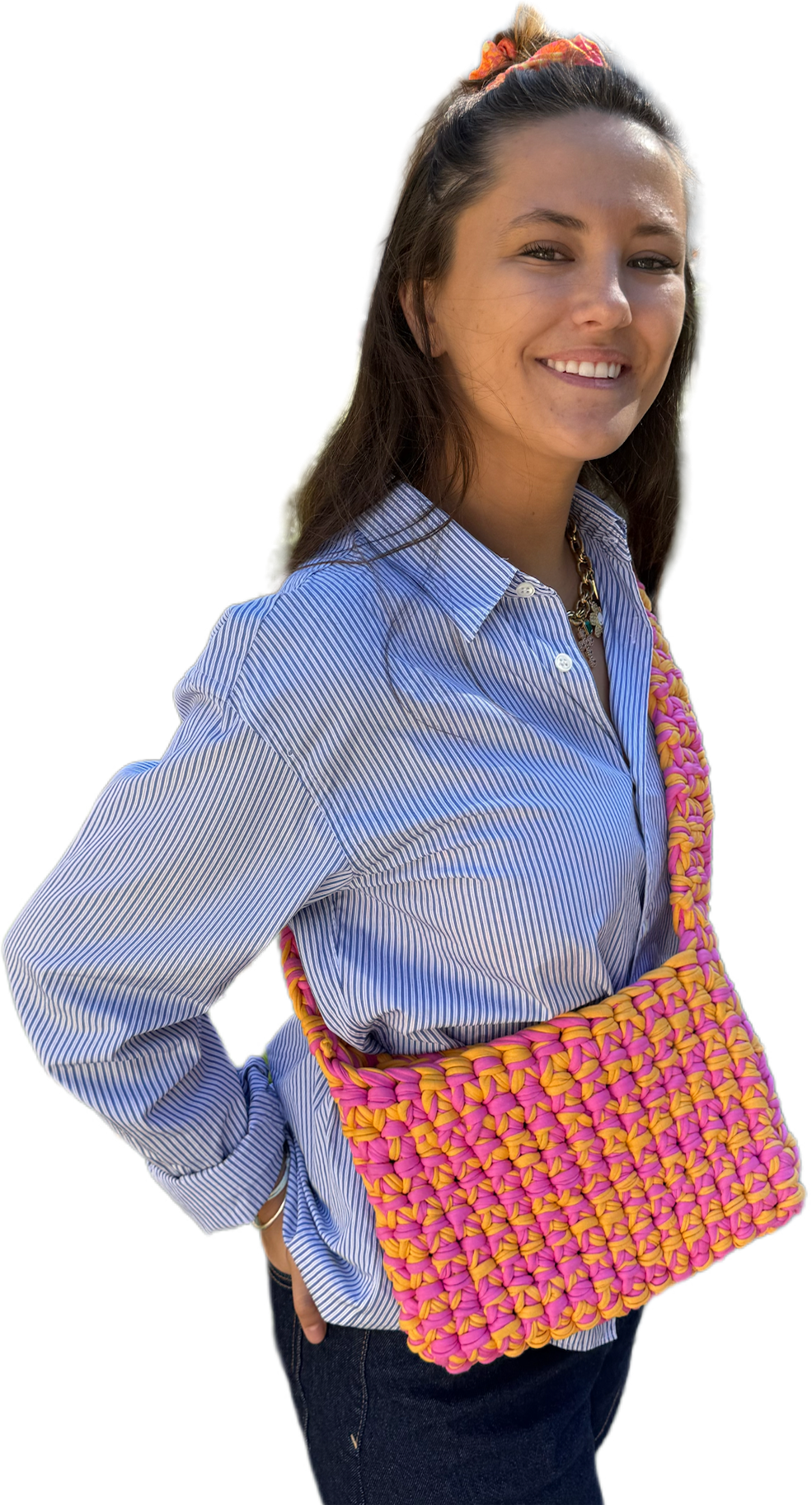 Pratique et léger, ce sac bandoulière en crochet est idéal pour un look décontracté. Il se porte sans même le sentir, vous accompagnant partout avec confort et style.